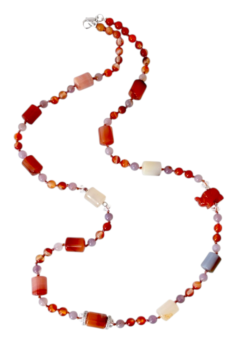 В центре истории этих бус — фигурка слоника из сердолика. Он напоминает о природе, путешествиях, символизирует долголетие и мудрость.