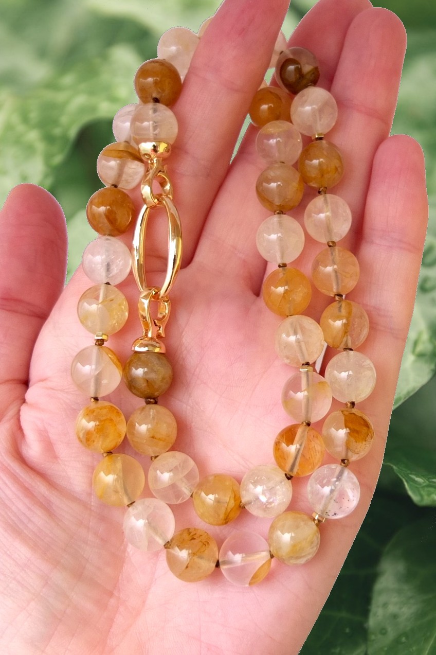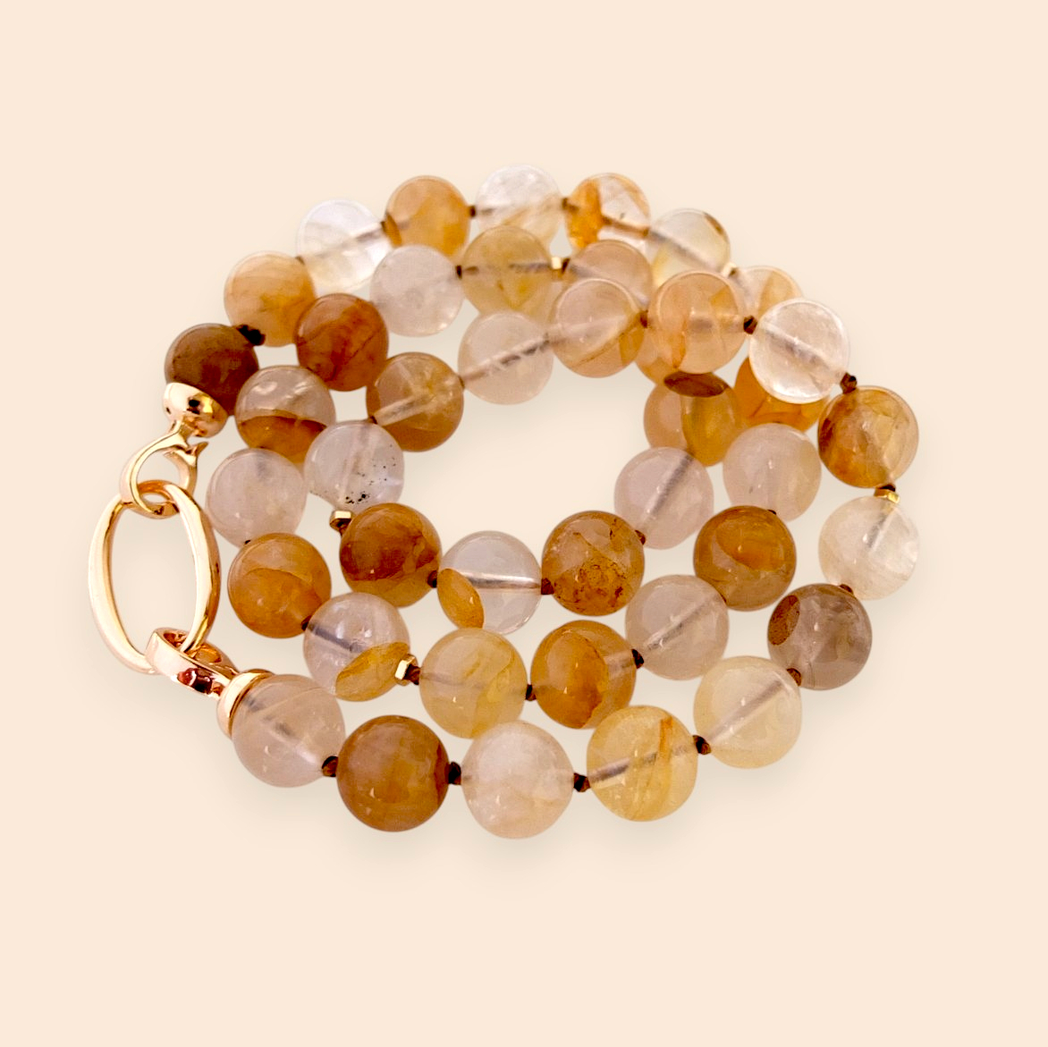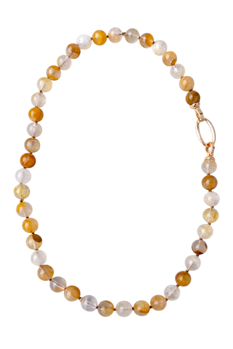 Бусы из природного кварца азезтулита. Притягательные бусины, как маленькие планеты, каждая хороша по-своему. Позолоченный замочек открывается с обеих сторон. Центральную часть замка можно использовать для съёмных подвесок, получая второй вариант украшения - колье.