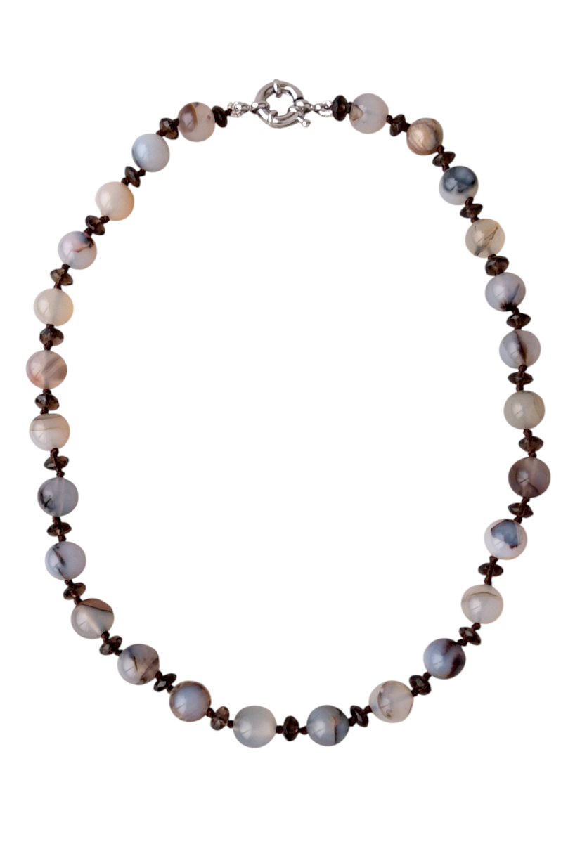 Бусы из пейзажного серого агата диаметром 10 мм и гранёного раухтопаза. Замочек "штурвал". Бусы собраны классическим способом: на нить через узелок. Длина 45 см.