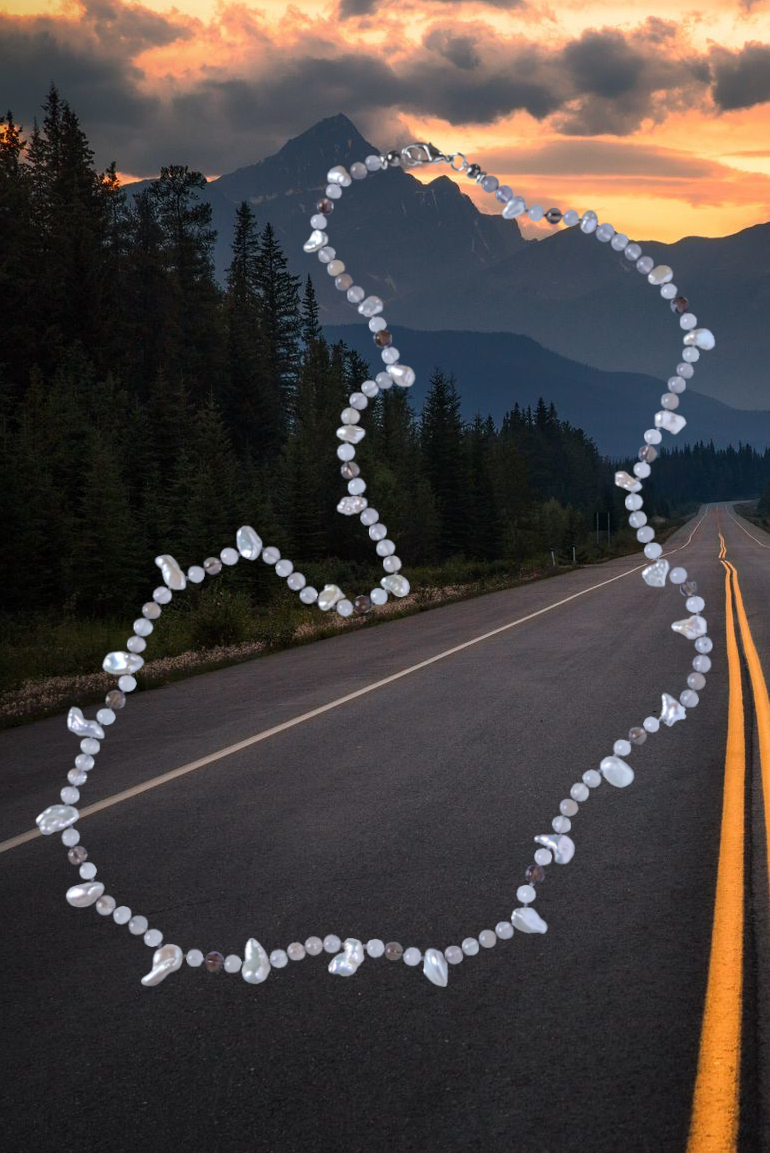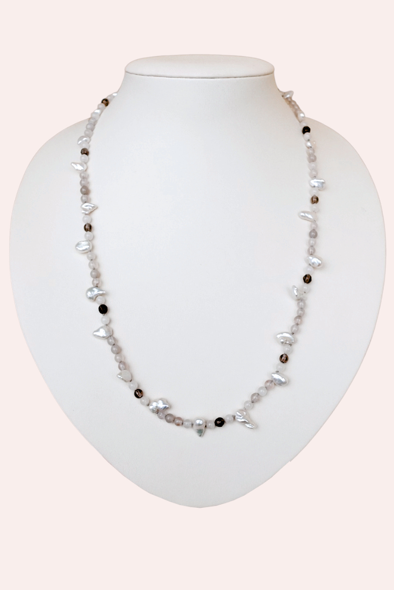 бусы с серым агатом и жемчугом Снежана