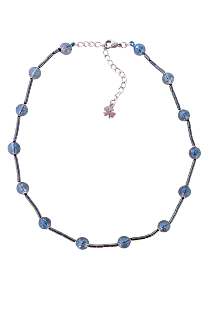 Бусы под шейку из кварца с лазерной обработкой поверхности, благодаря которой нежный голубой оттенок на гранях переливается и ярко сверкает, по-разному при искусственном освещении и естественном.