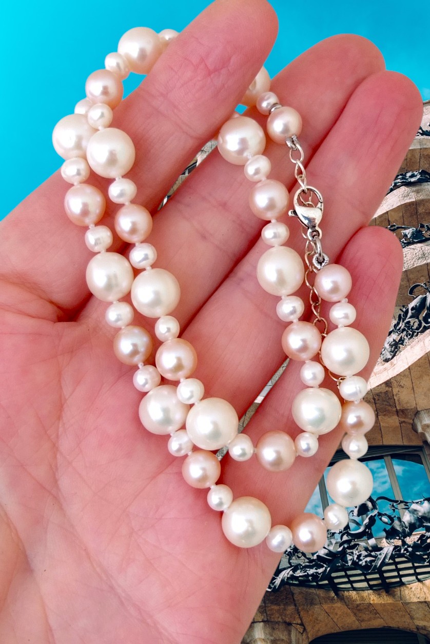 Чокер с пресноводным жемчугом разного цвета и размера. Нежное украшение на каждый день. Диаметр жемчужин от 4 до 8,5 мм.
