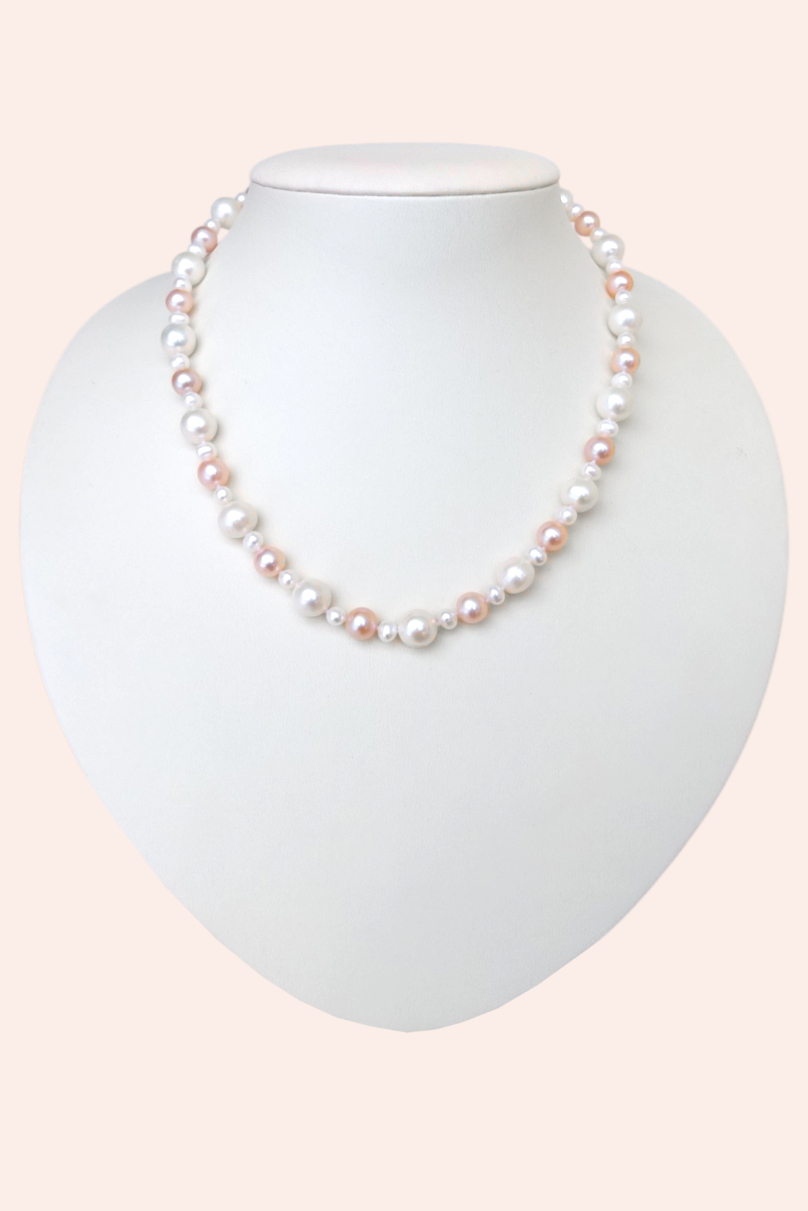 Этот чокер создан для тех, кто ценит утонченную красоту и не любит громоздких украшений. Благодаря гармоничной комбинации белого и розового жемчуга разного диаметра, украшение выглядит фактурным и несколько винтажным. Жемчужины подобраны вручную.
