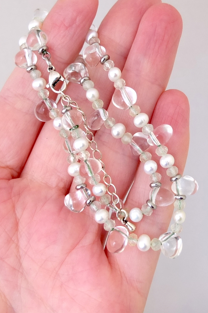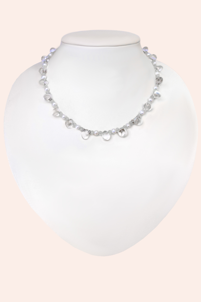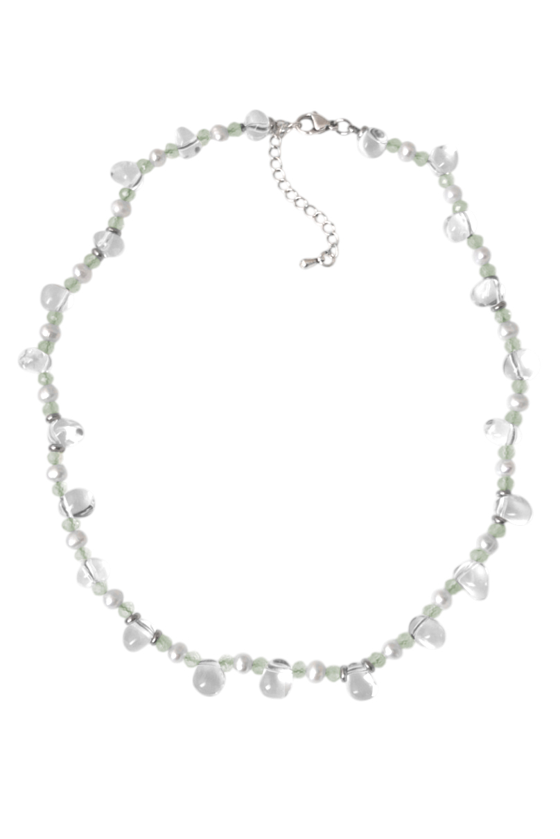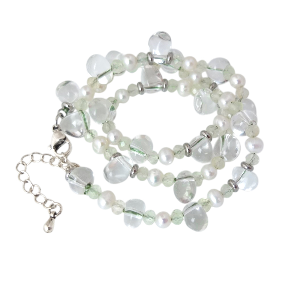 Чокер Росинка с прозрачным кварцем, жемчугом и пренитом