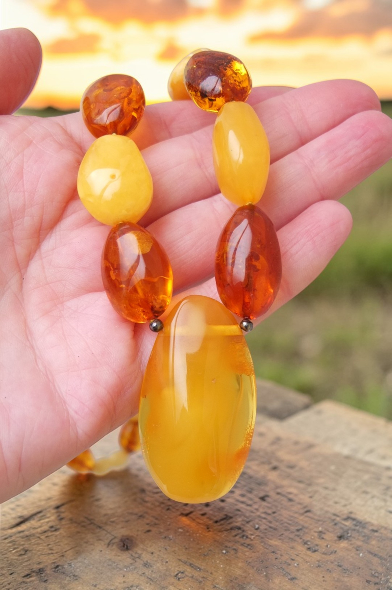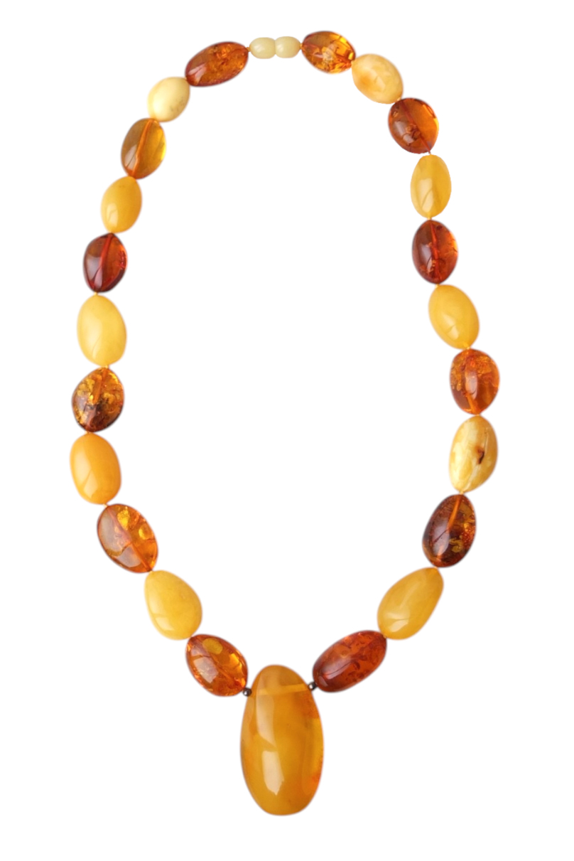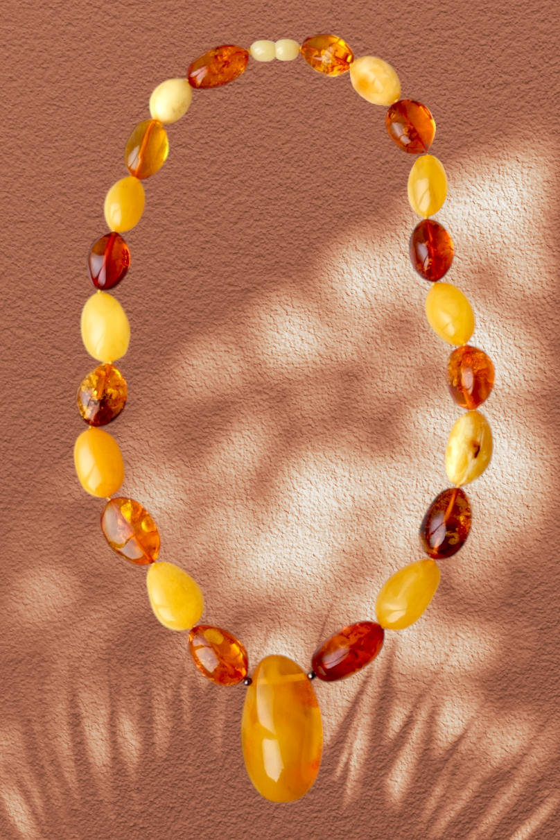 Колье с кулоном из янтаря слива крупная