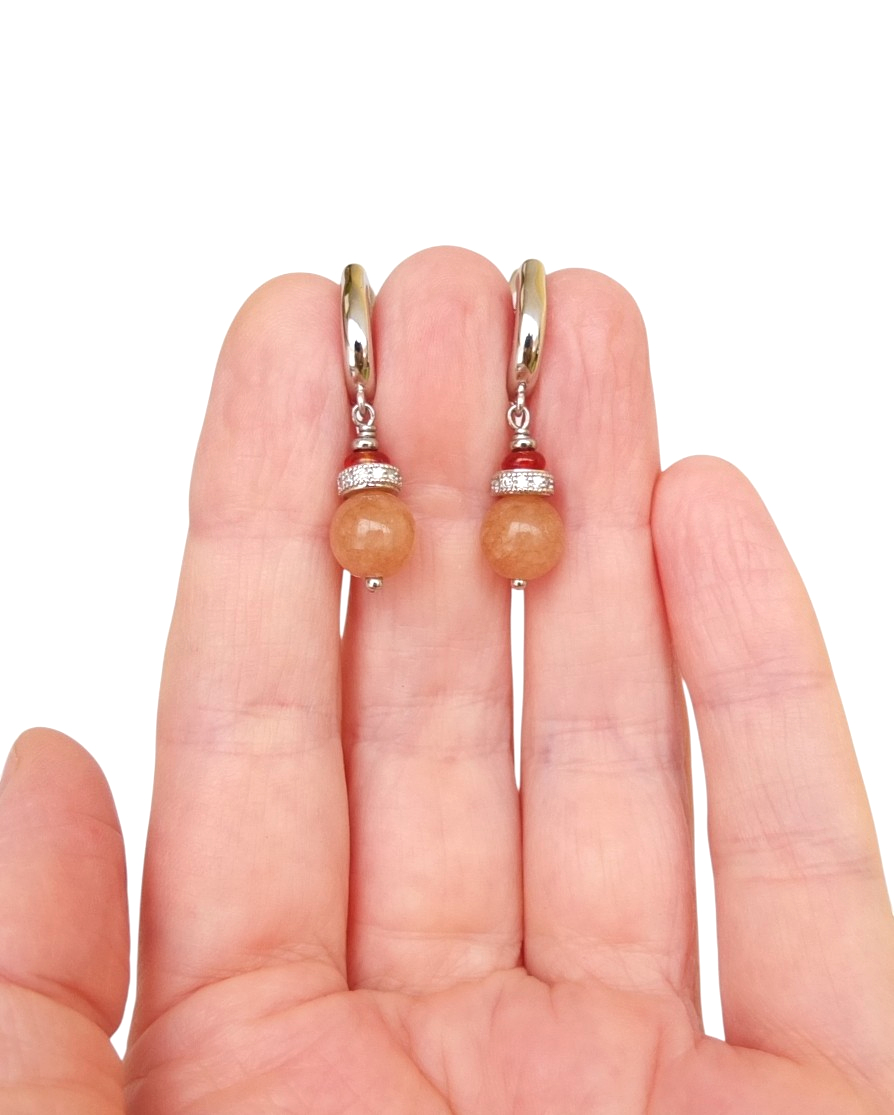 Нежный бежевый оттенок — тренд, который всегда в моде. Это идеальная основа для любого образа. Серьги легко сочетаются с деловым костюмом, романтичным платьем или повседневным casual-нарядом. Сердолик добавляет бежевым камням сочности, внутреннего "огня".