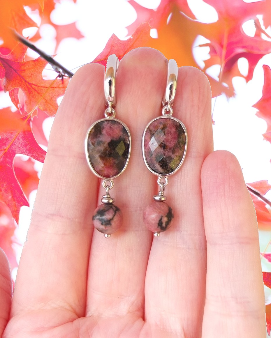 Серьги с родонитом, английский замок
