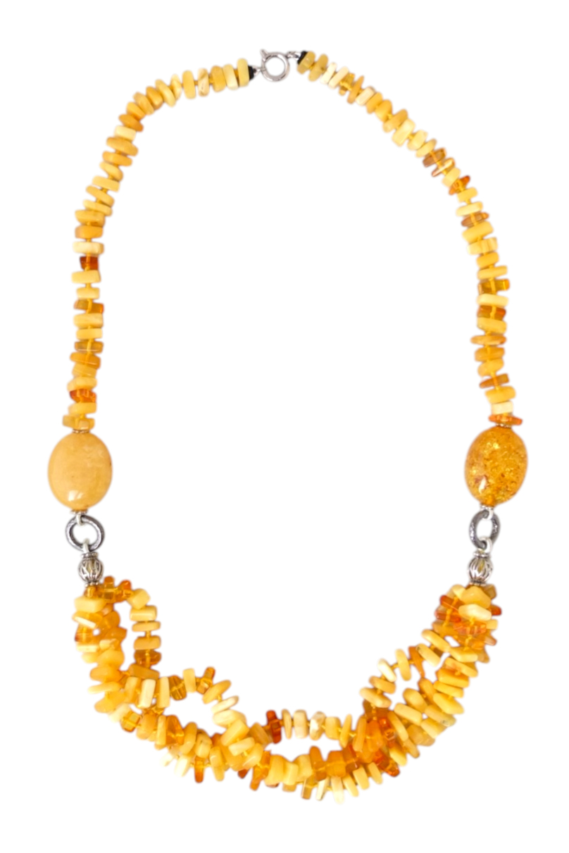 Колье из балтийского цельного янтаря в лимонных оттенках выглядит свежо и солнечно.